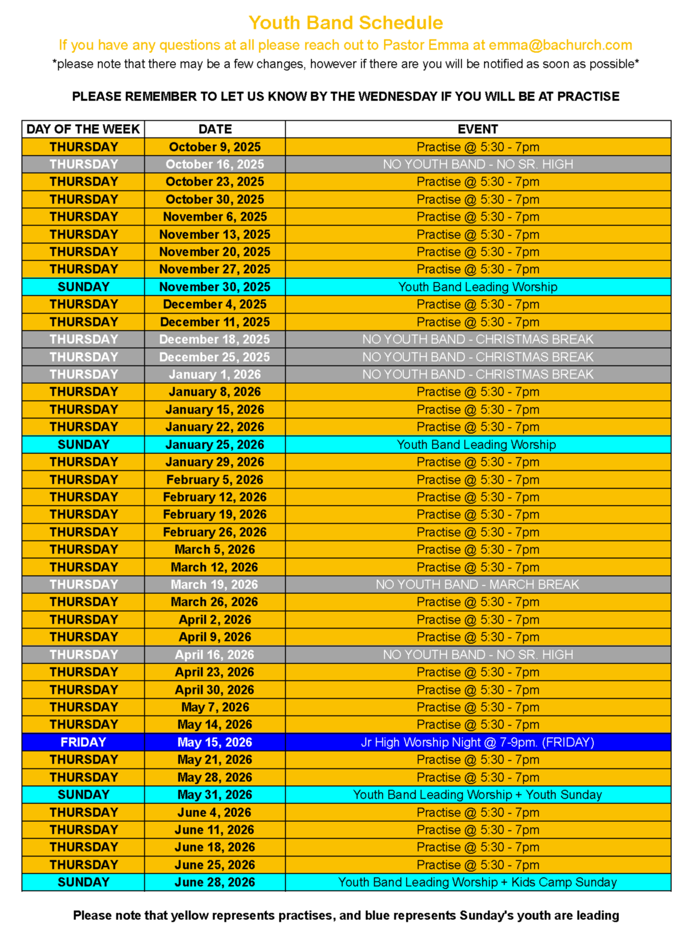 Do you have a passion for music and a heart for worship? The Youth Band is your chance to use those gifts to glorify God! Whether you're in grade 6 or a young adult, we'd love to have you join us on this exciting journey of faith, music, and leadership.