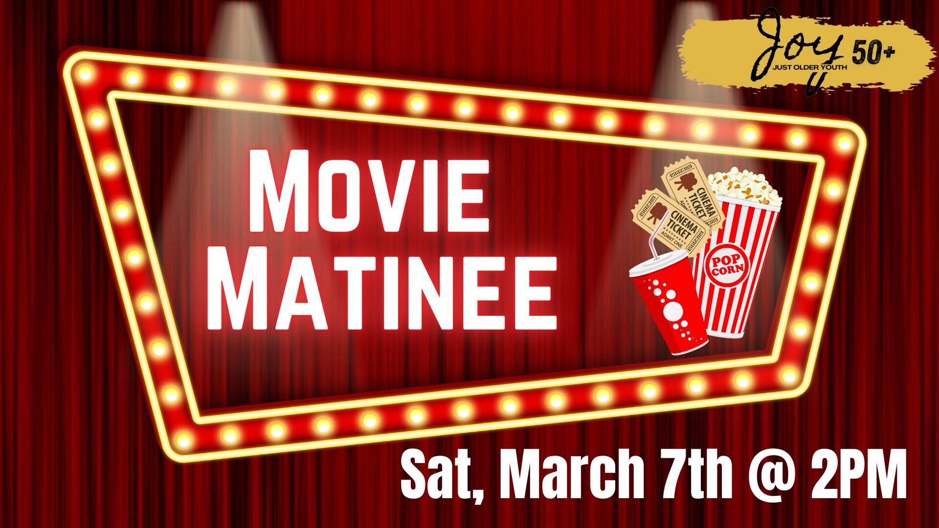 Mar 7 Sat March 07, 2026 from 02:00 PM to 04:30 PM America/Toronto JOY Event Come on out to BAC and get a full movie experience complete with popcorn and drinks. This is a great event to invite a friend or two. See you at the movies!