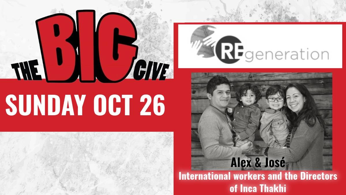 Hey Church Fam! Sunday, October 26th is our annual 'BIG GIVE' where all the funds from the offering go to supporting 2 ministries dear to our hearts. The first is regeneration and the second Inca Thakhi.